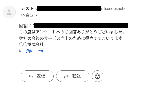 ここでは本文冒頭にGoogleフォームから取得した「回答ID」の情報を入れていますが、他にも「回答者のメールアドレス」や「回答日時」などを組み合わせた文章を設定することもできますよ!