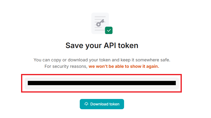 発行されたトークン画面が、以下の赤枠内に表示されます。忘れないようにコピーしておきましょう。