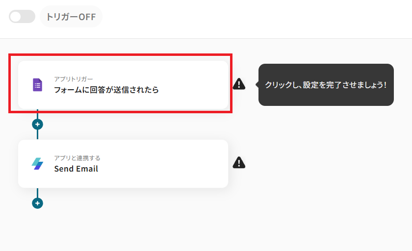 このフローボットでは、「Googleフォームに回答が送信されたら」というアクションがトリガーになります。クリックして内容を設定していきましょう。