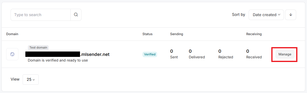 ドメインが表示されたら、右側にある「Manage」をクリックしましょう。