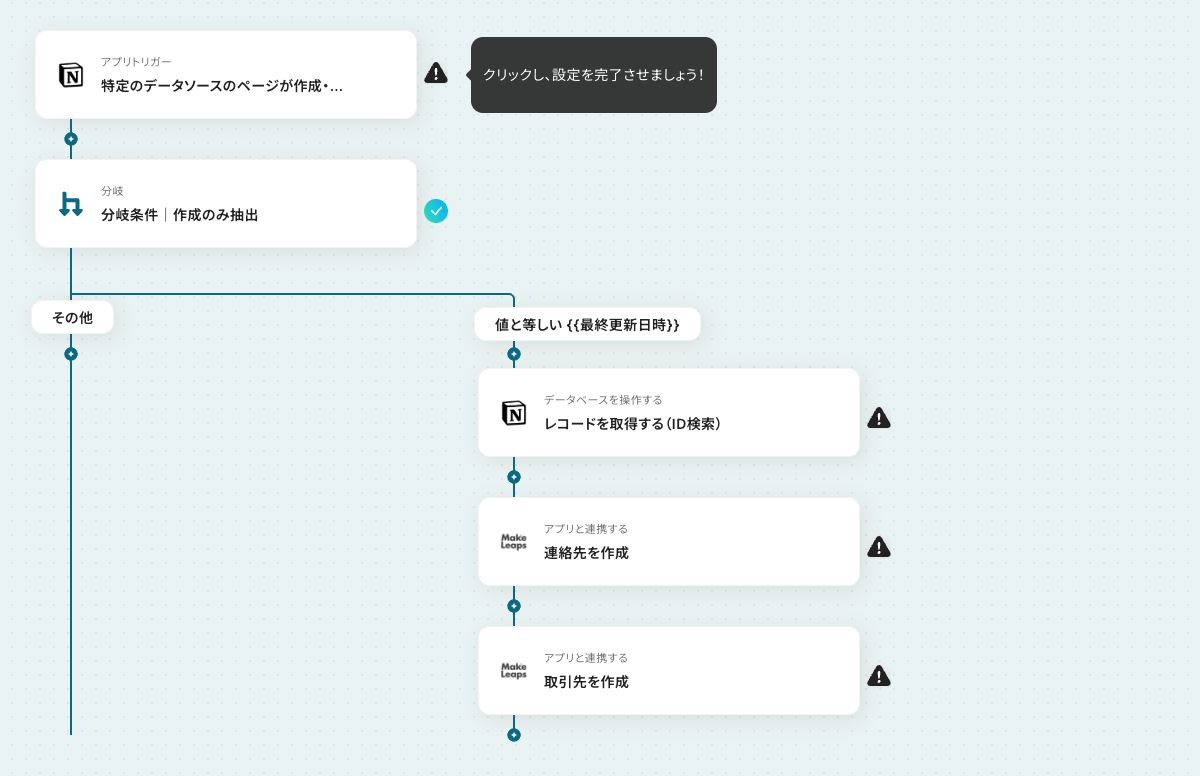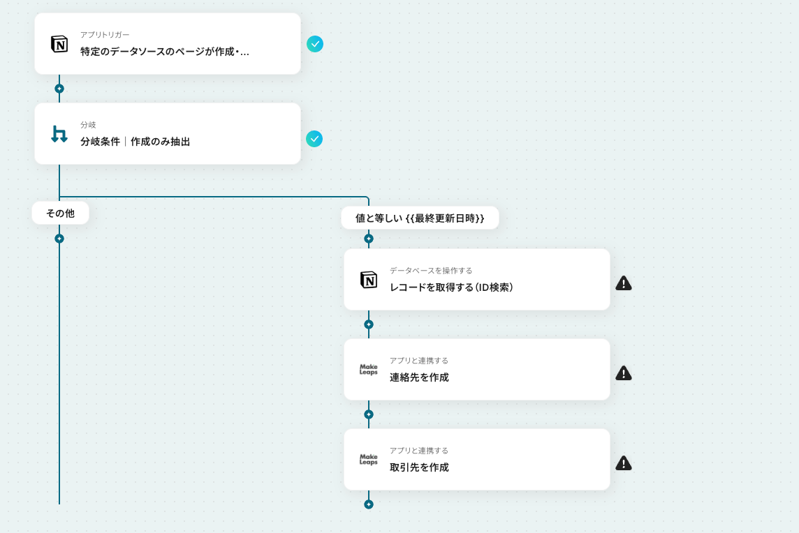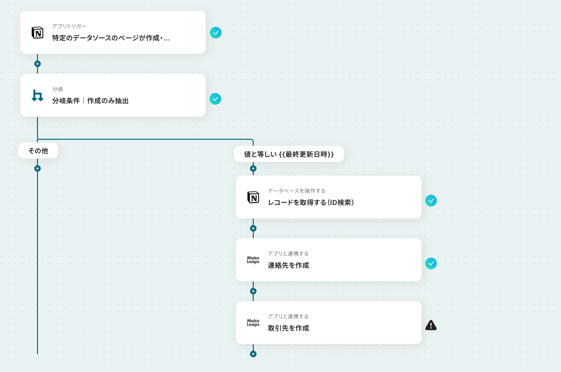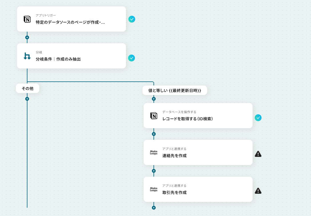 以上が、Notionで行が追加されたら、MakeLeapsに取引先を作成する連携手順になります。