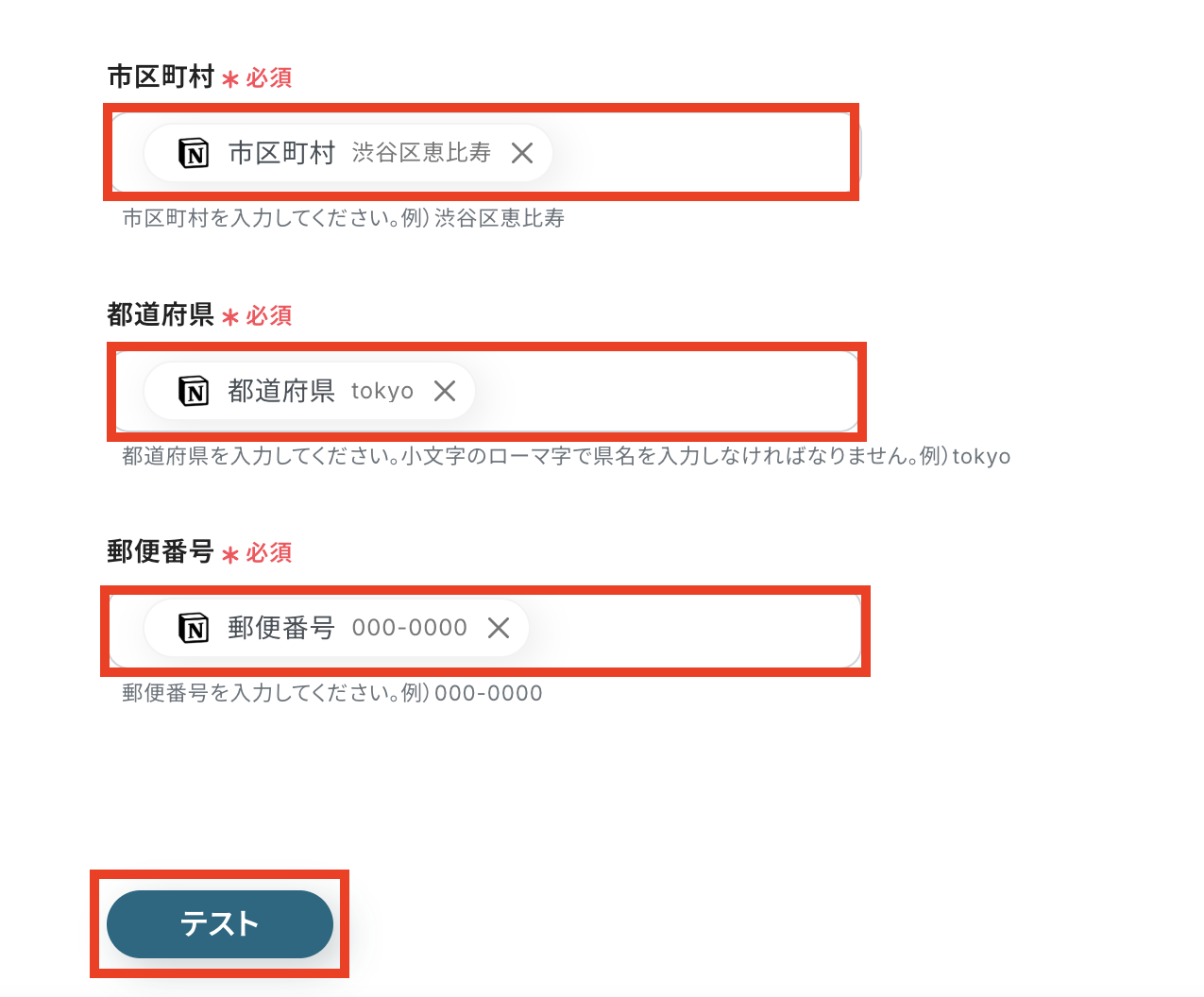 トリガーとなるページ(レコード)をテスト用に追加してください。 MakeLeapsの連絡先追加では「Eメール・国名・住所(番地以降)・市区町村・都道府県・郵便番号 」が必須項目です。 Notionへの入力時点で、国名はJPなどの国名コード、都道府県はtokyoなどの小文字のローマ字で設定する必要がある ので注意してください。
