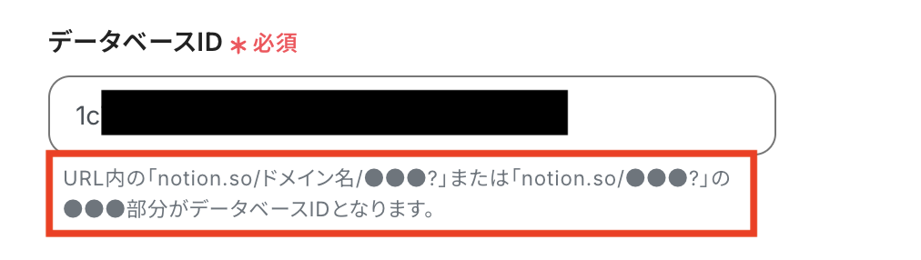 次に「データベースID」を赤枠の説明文を確認した上で設定します。