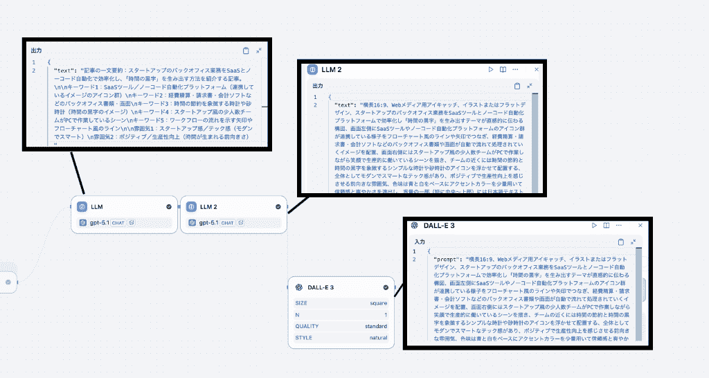 画像生成ノードとしてDALL-E 3を組み込むことで、誰でも簡単にイメージ通りの画像が作れるのです!