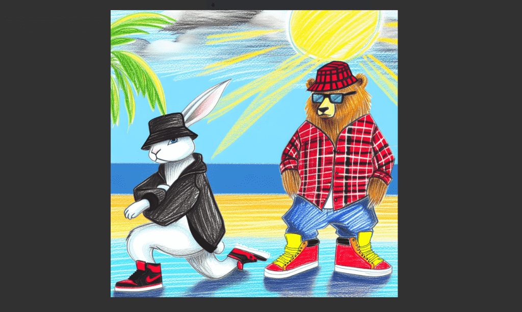 ちなみにクマにサングラス、というのはテキストで指示していないので、ちょっとイメージとは違う結果となりました。