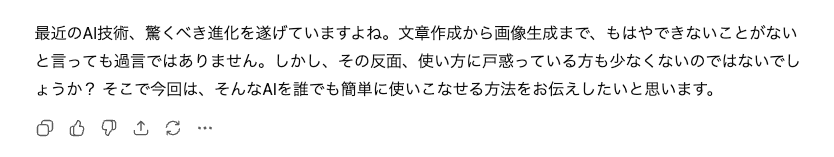 原文は事実を並べるだけの素っ気ない内容でしたが、ChatGPTは「驚くべき進化」や「もはやできないことがない」といったポジティブな強調表現に加え、「戸惑っている方も少なくないのでは?」という読者への問いかけを挿入することで、読者との心理的な距離を縮めています。