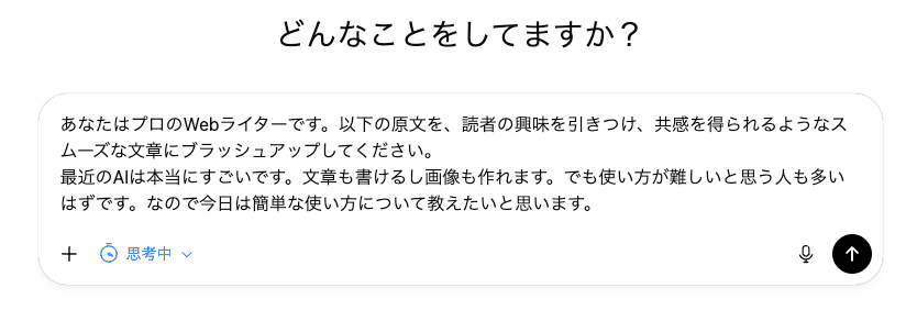 ここでは、あえて未完成な文章を投入して、どの程度ブラッシュアップされるかを検証しました。