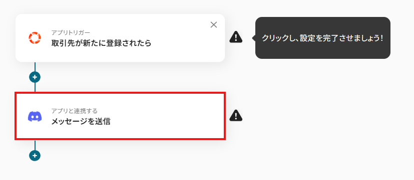 Mazricaで取引先が新たに登録されたことをアクションの起点として利用し、Discordに自動でメッセージを送信できます。