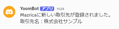 Mazricaで取引先が新たに登録されたら、Discordでメッセージを送信する