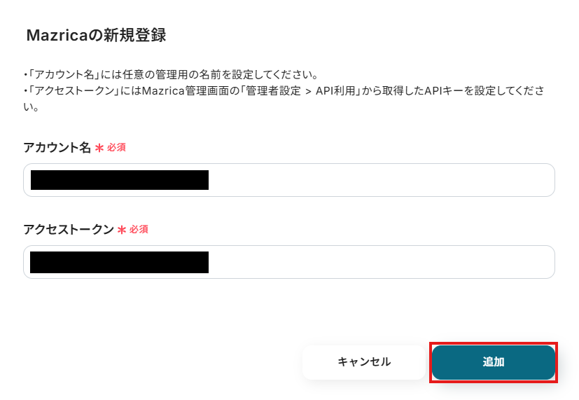 ・Meta広告(Facebook)、Mazrica(旧Senses)のそれぞれとYoomを連携してください。