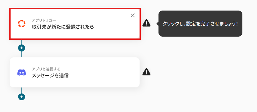 先ほどの画面で「OK」をクリックして、表示された画面のアプリトリガー「取引先が新たに登録されたら」をクリックしましょう。