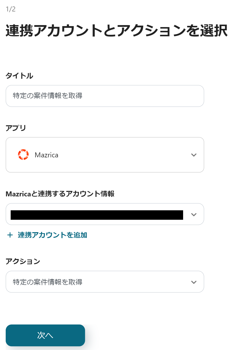 初めにMazricaの設定から行うので、「案件アクションが新たに登録されたら」をクリックします。