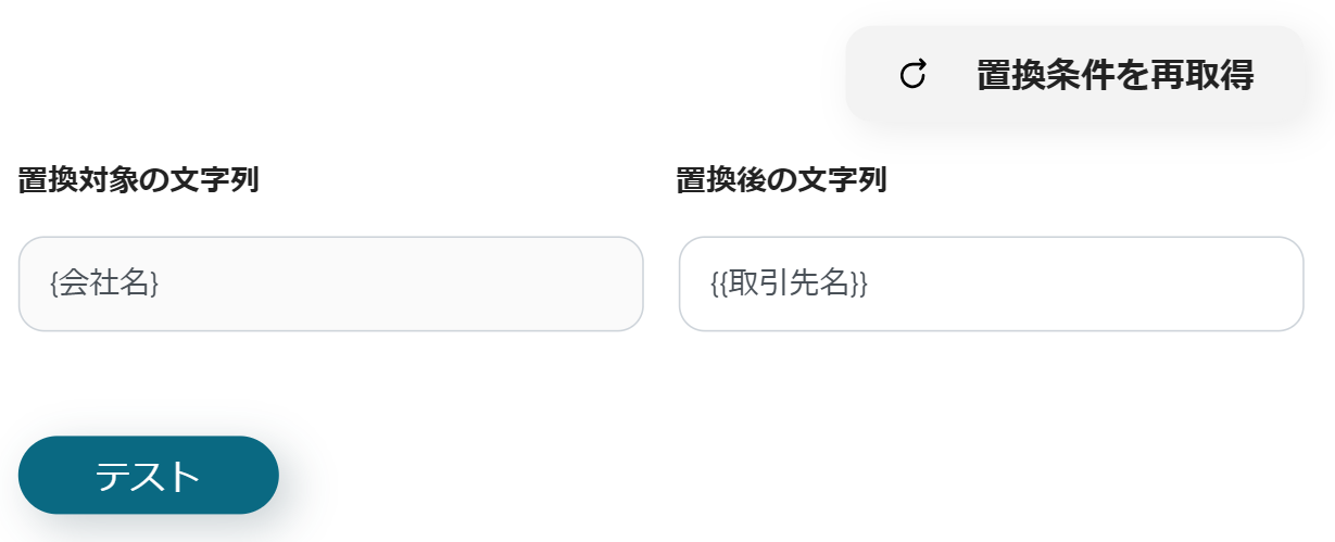 「置換後の文字列」→{{取引先名}}
