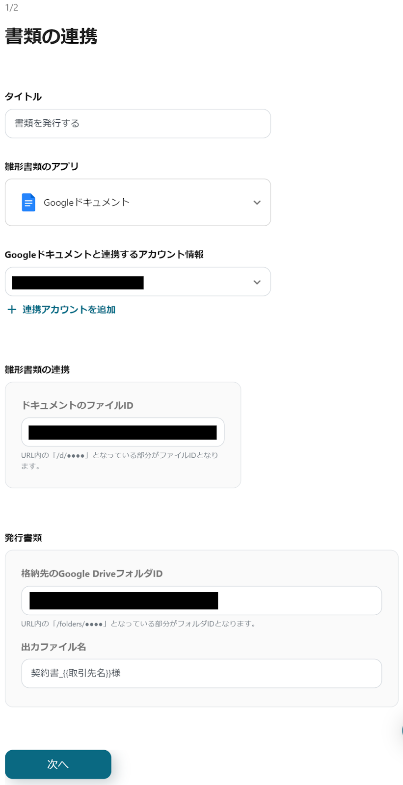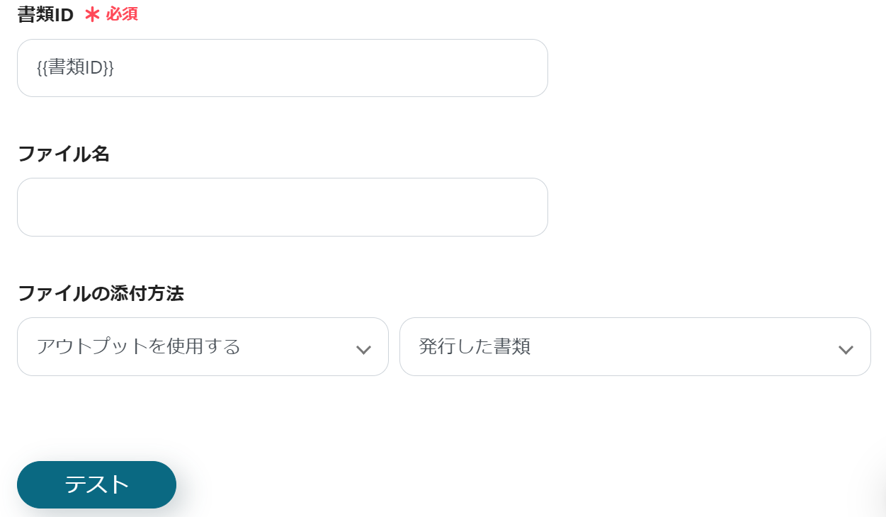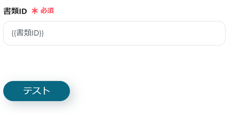 以下の画面が表示されるので、「取引先ID」が{{取引先ID}}となっているか確認し、「テスト」→「テスト成功」→「保存」をクリックしてください。