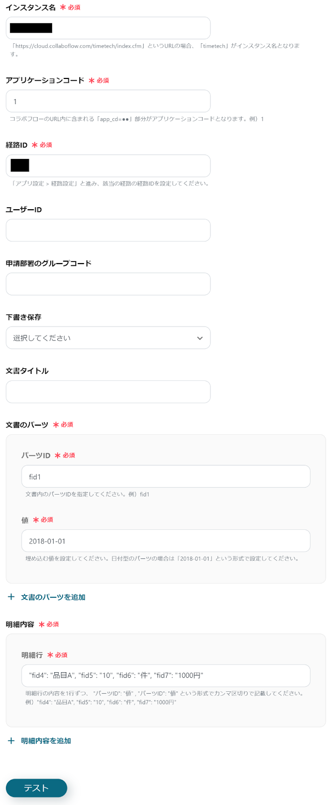 ※テストを実施するため、入力は必須です。