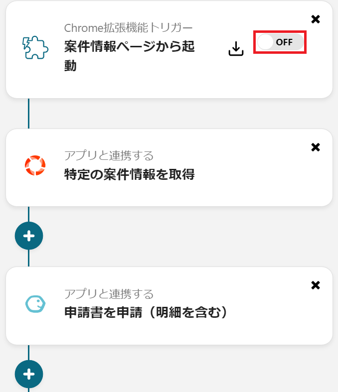 最後にアプリトリガーを「ON」にしたら、自動化の設定は完了です。