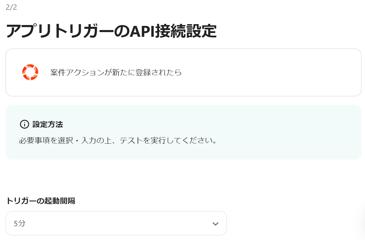 以下の画面が表示されるので、「トリガーの起動間隔」を任意で設定してください。