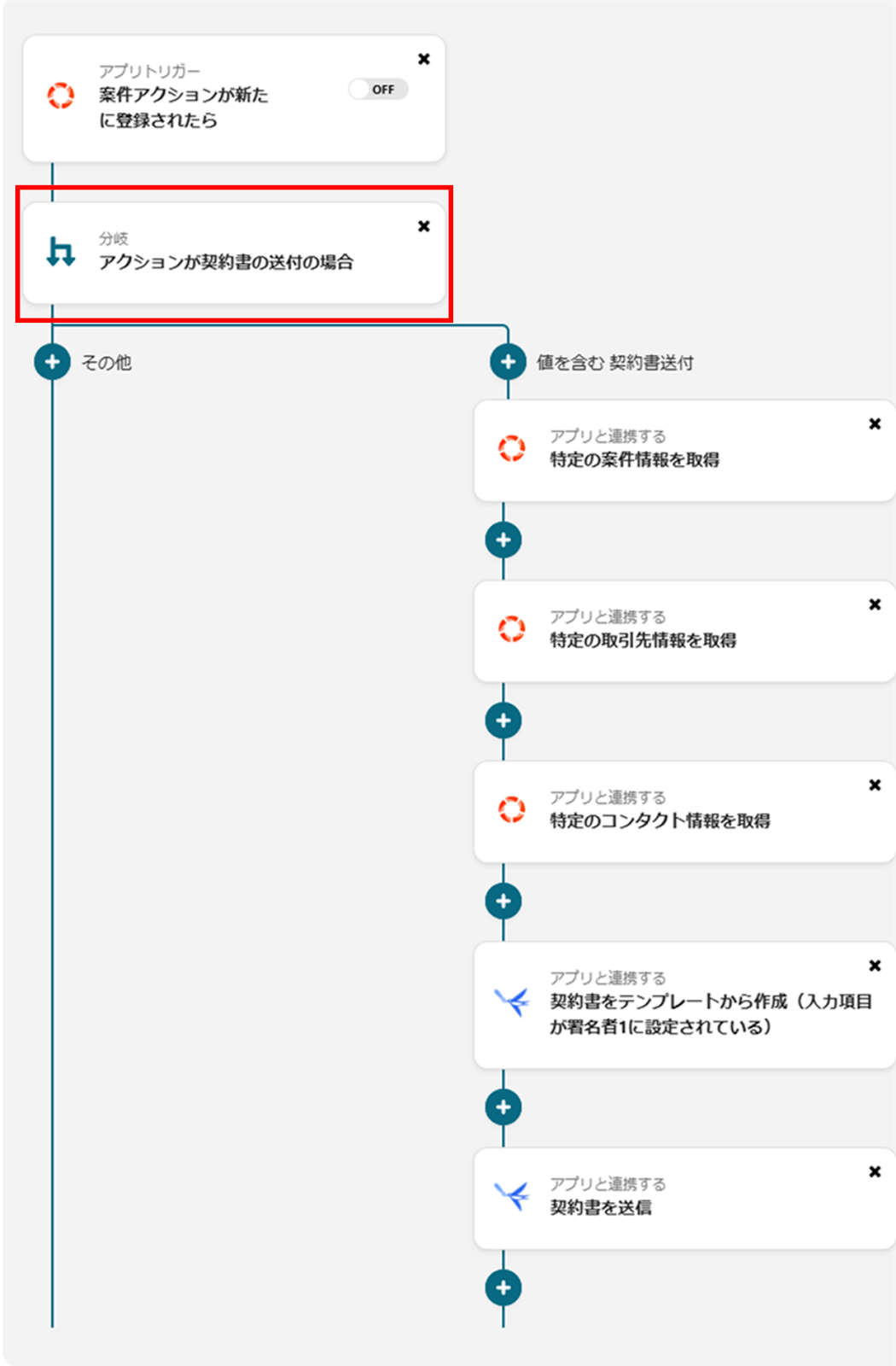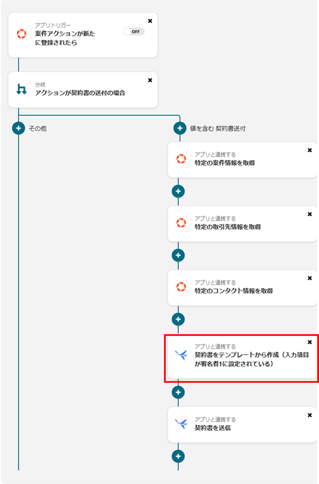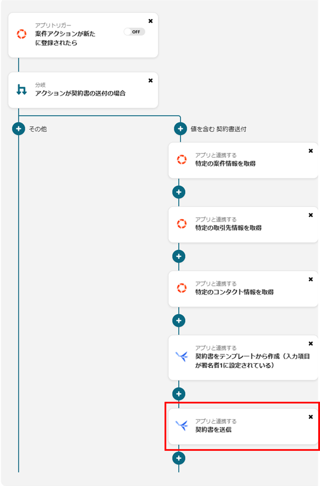 (1)次は「アクションが契約書の送付の場合」をクリックします。