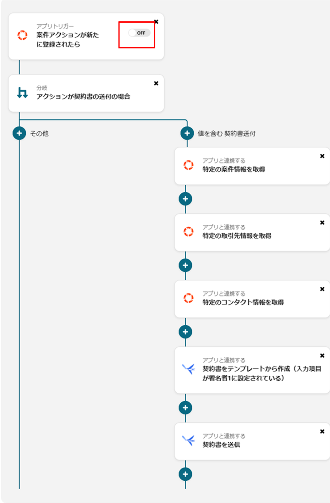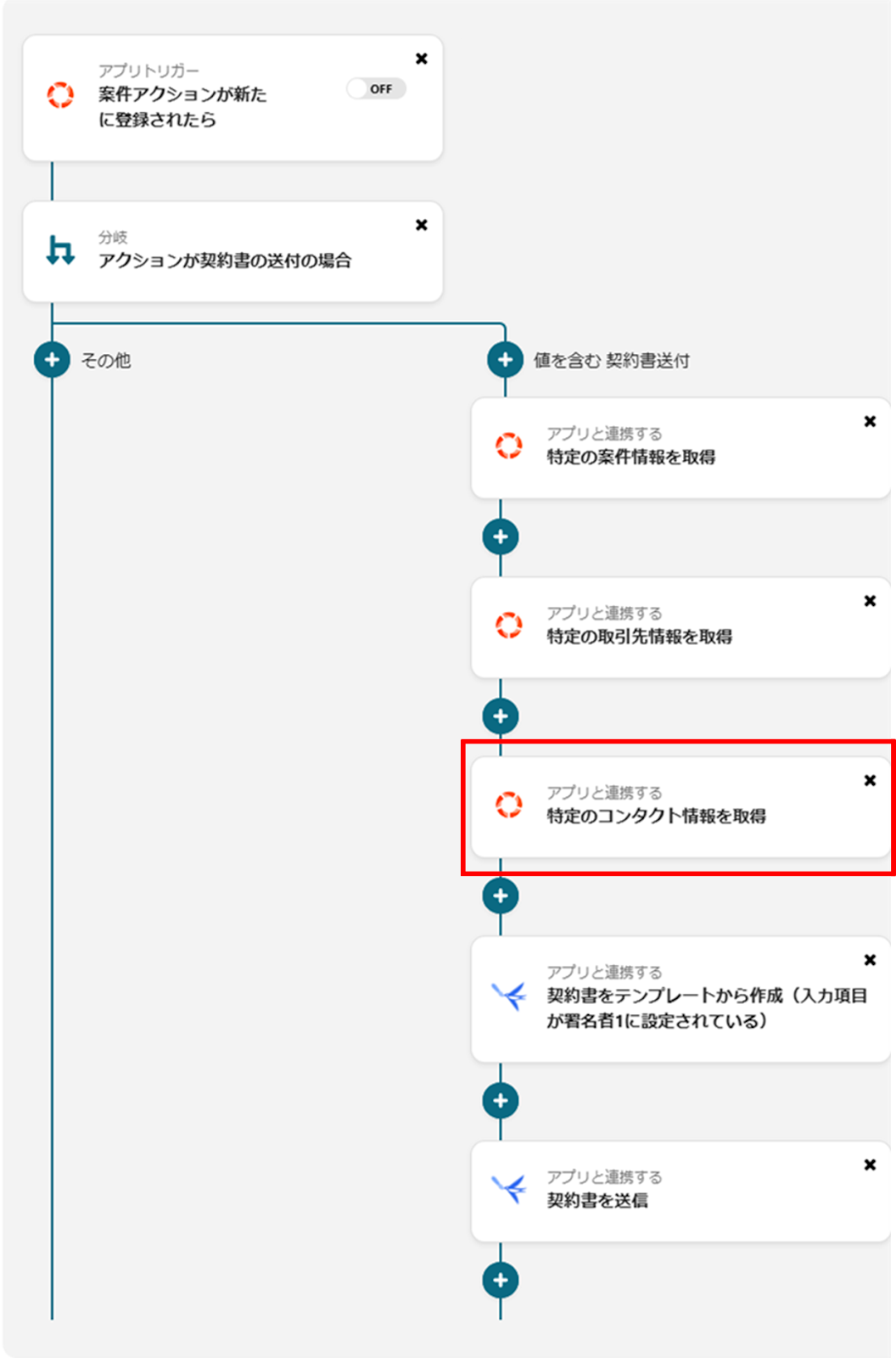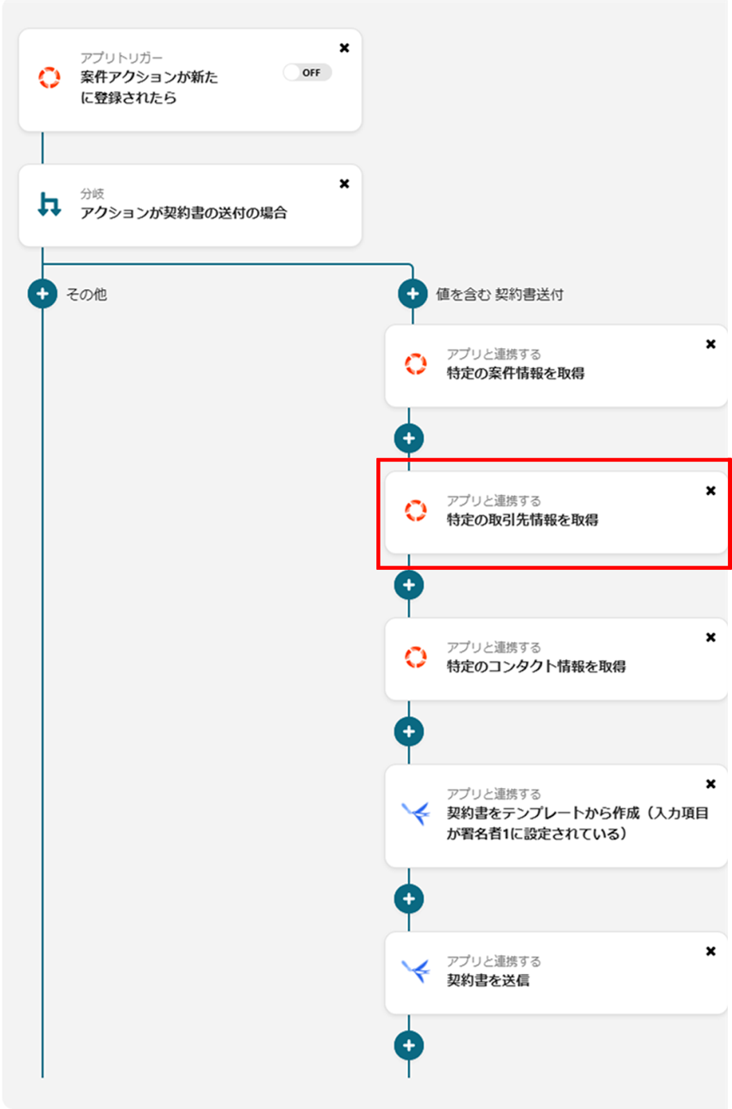 (1)次は「アクションが契約書の送付の場合」をクリックします。