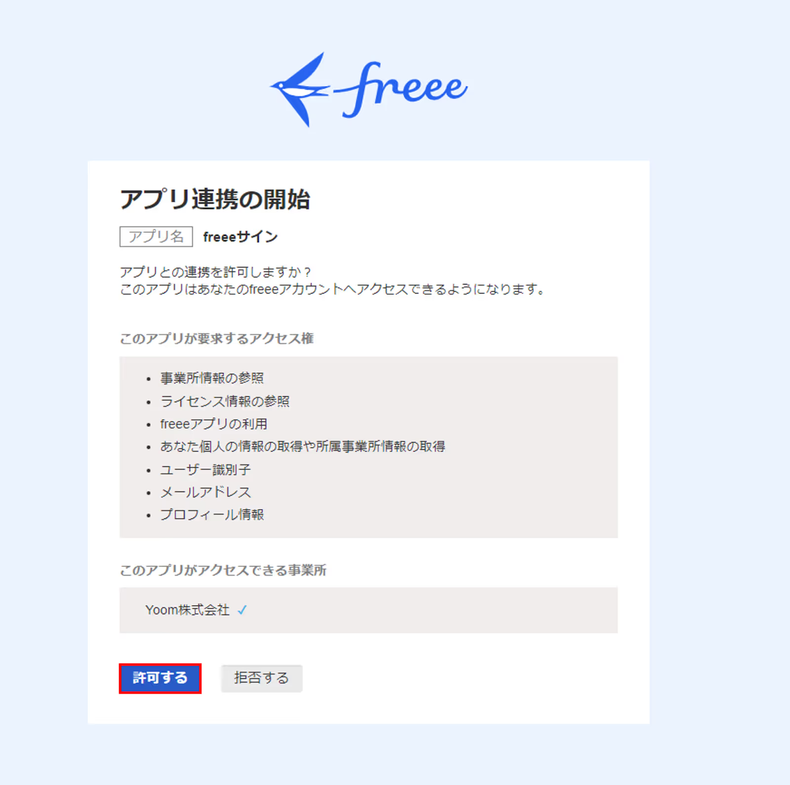 (7)アプリの連携の開始画面が出たら、「許可する」をクリックします。
