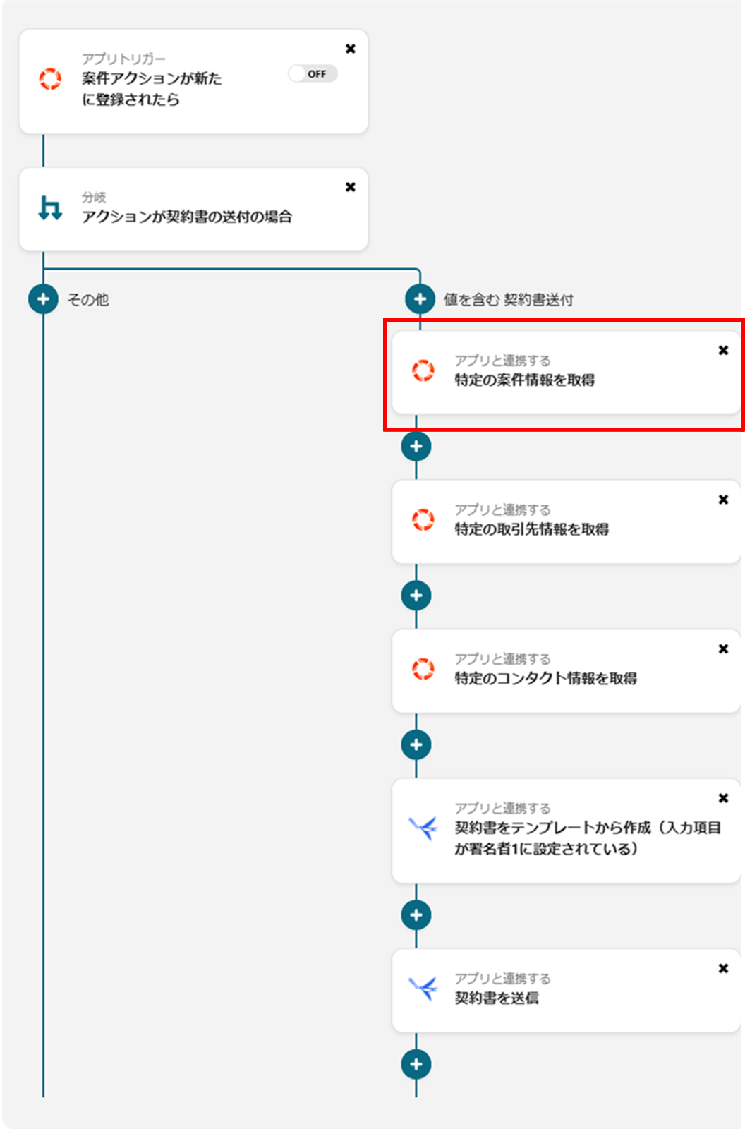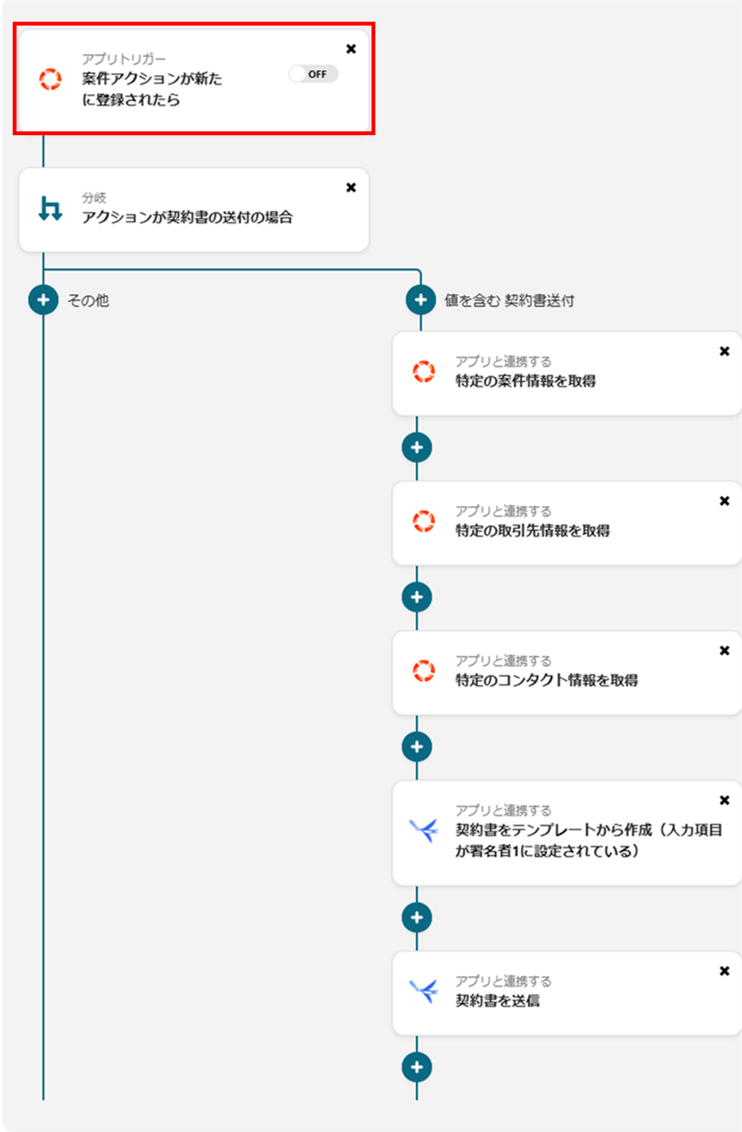 ※オペレーション:「案件アクションが新たに登録されたら」を選択。