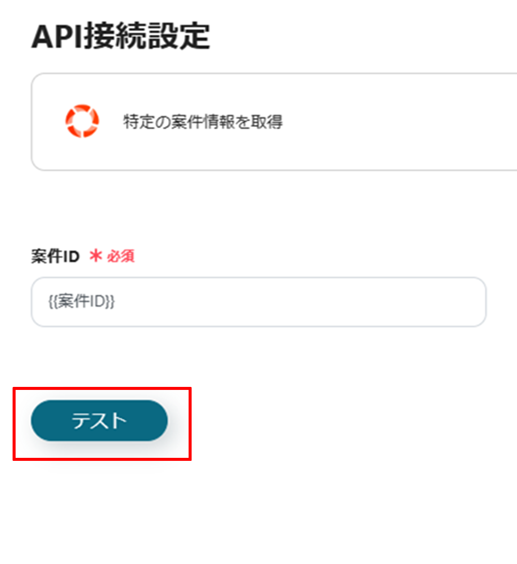 (5)API接続設定画面が出てくるので、案件IDをアウトプットより選択し、「テスト」をクリックします。エラーとならなければ、「保存する」をクリックします。