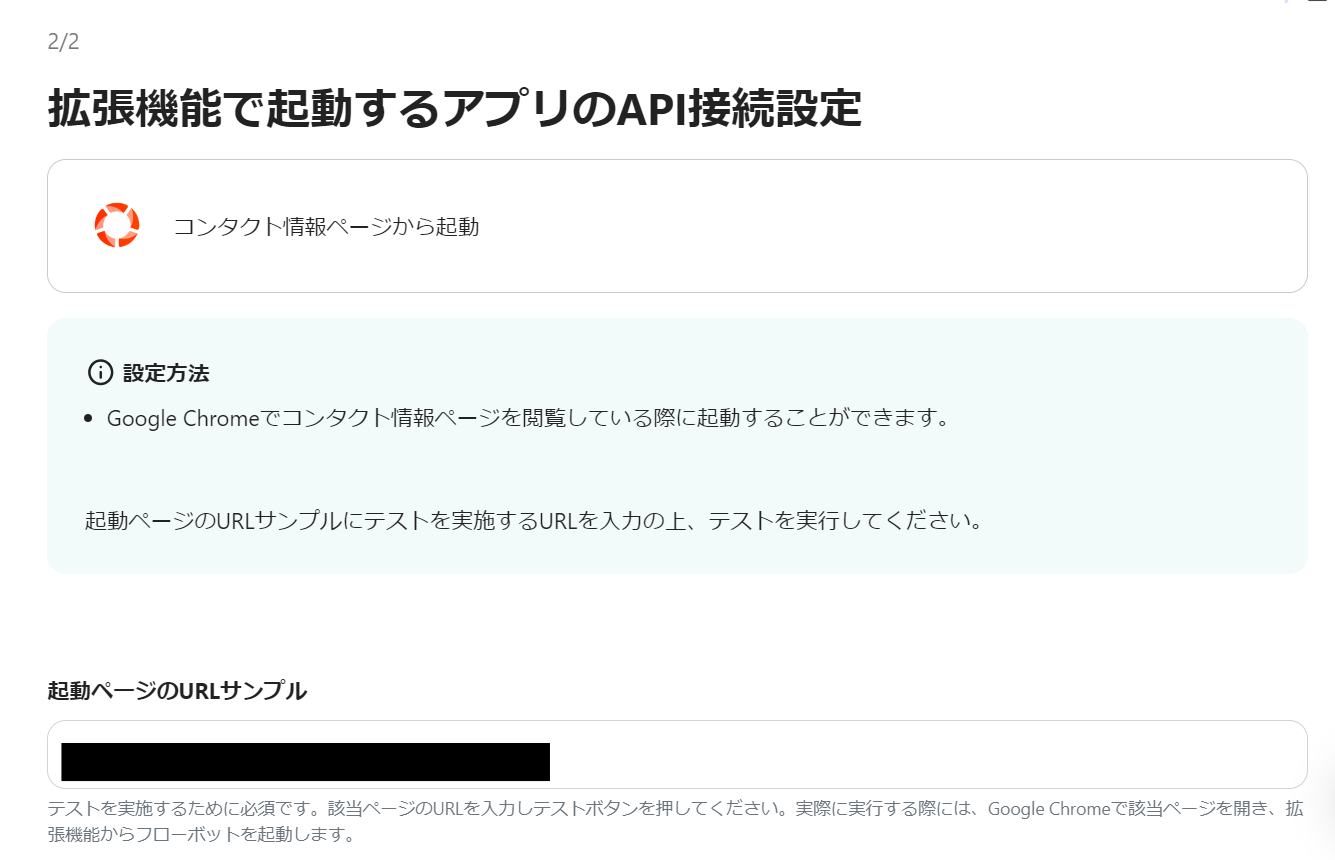 起動ページのURLサンプルに、テスト用のURLを入力します。