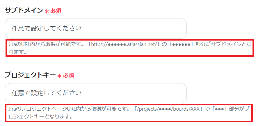 赤枠の内容通り、Jira SoftwareのURLから取得しコピーしましょう。