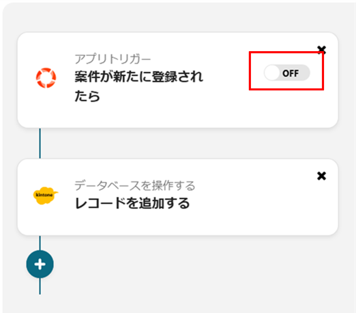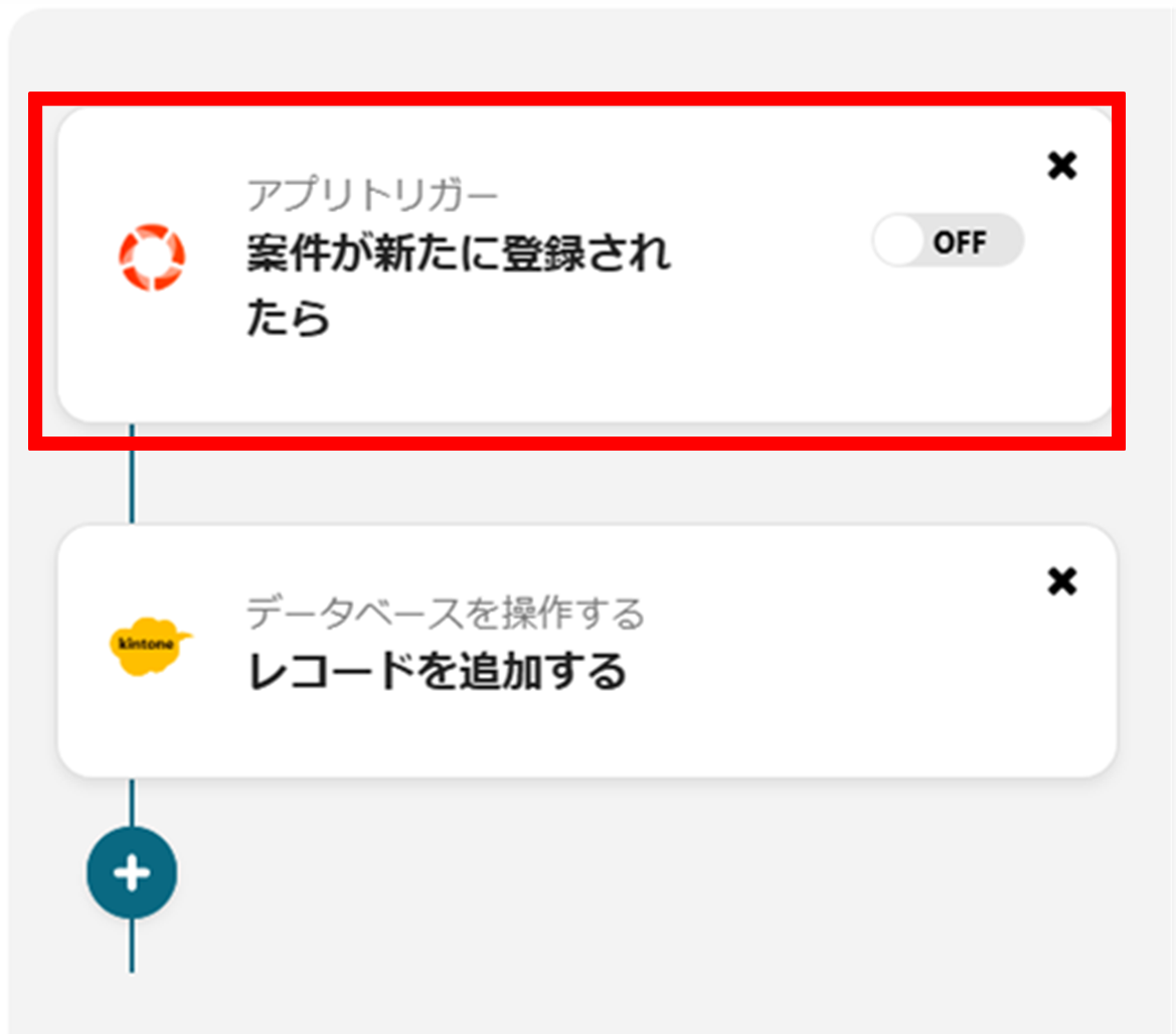 アプリトリガーの、「案件が新たに登録されたら」をクリックします。