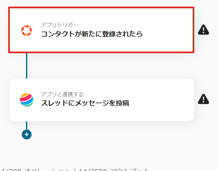指示にしたがって、右に「!」のついているフローのアイコンを順番にクリックし、編集していきます。