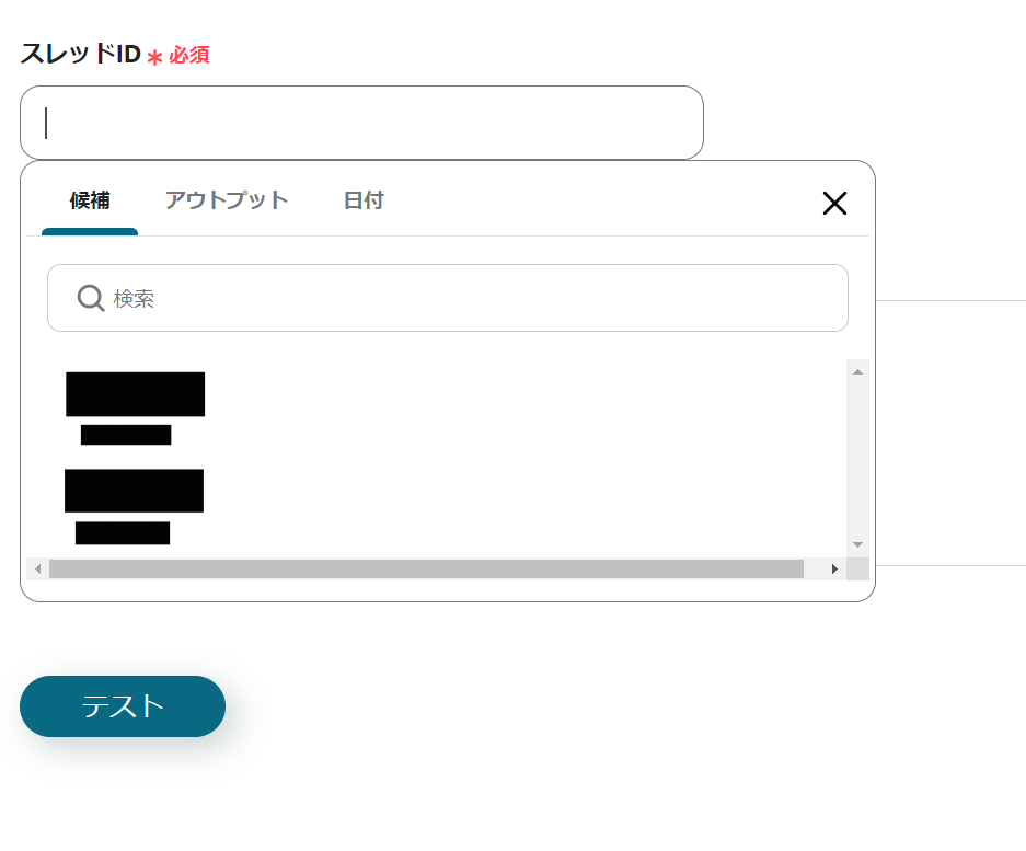 スレッドIDはアプリ登録ができていると、候補から選択することが可能です。