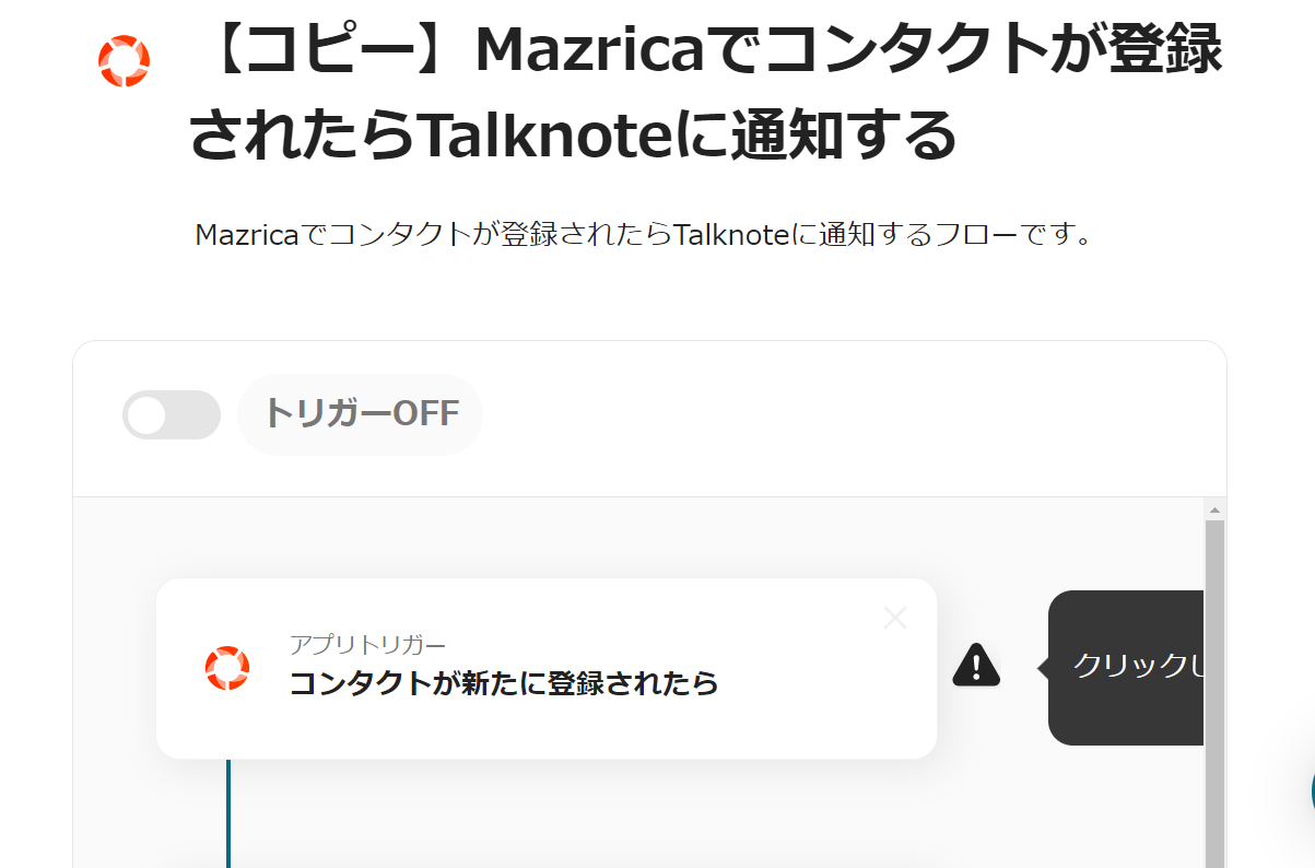 今回は、【Mazricaでコンタクトが登録されたらTalknoteに通知する】というフローを作成します。