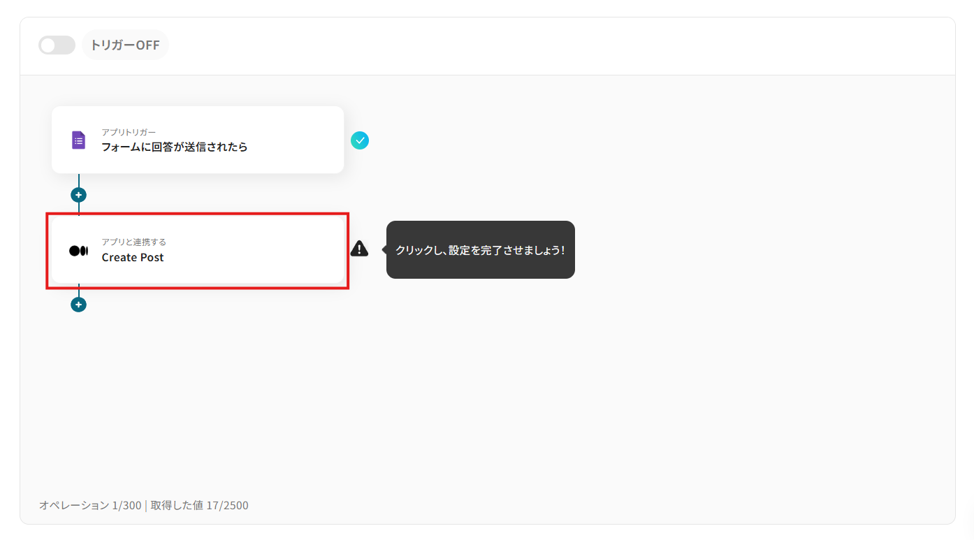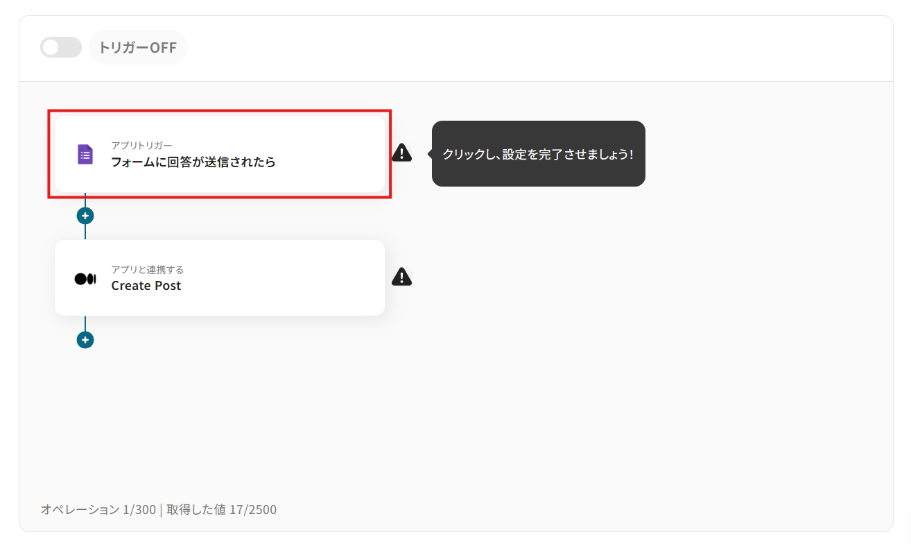 トリガーとして設定するGoogleフォームを事前にご用意ください。