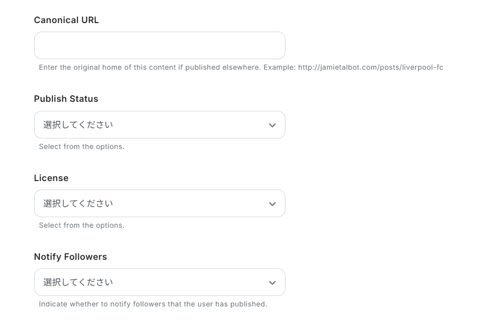 ここでは例として、下図のMedium投稿用フォームを使用します。