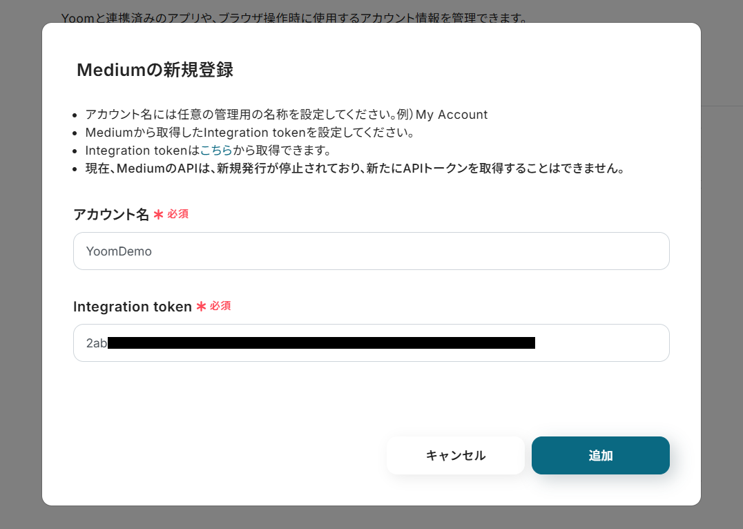 ・mediumとYoomを連携してください。