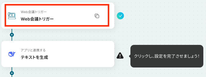 テンプレートを開いたら、最初に表示される「Web会議トリガー」をクリックします。