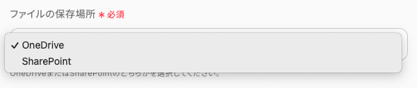 ファイルの保存場所は、OneDriveまたはSharePointを選択してください。