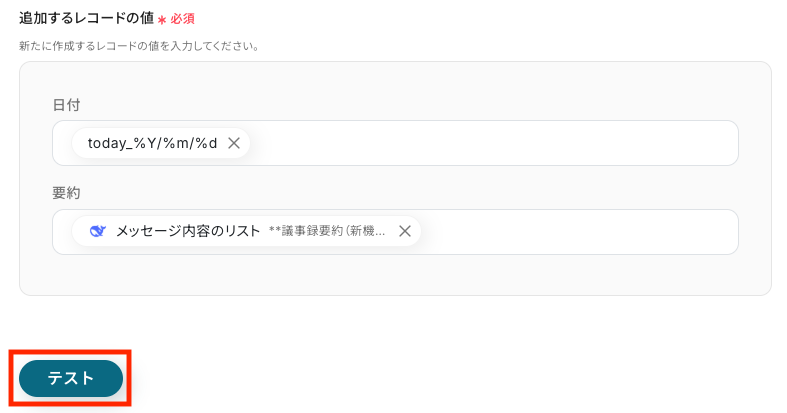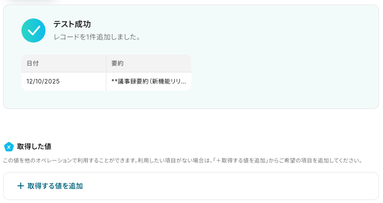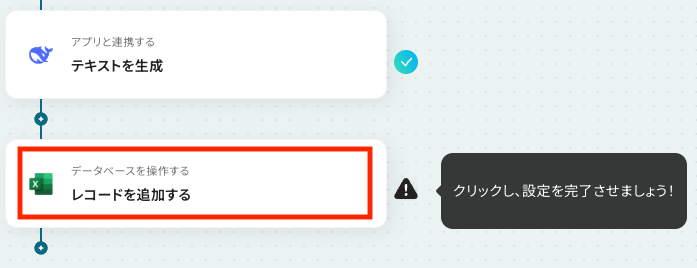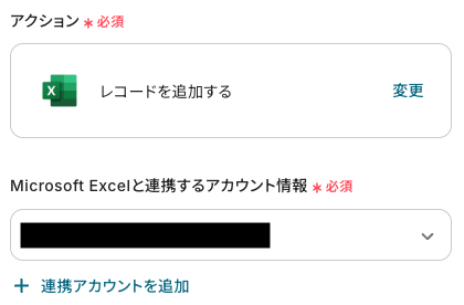 アクション:「レコードを追加する」が自動で選択されています。