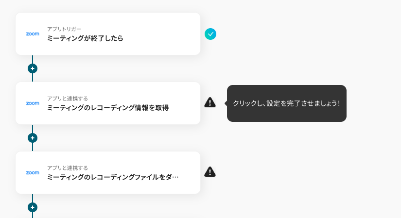 ・Zoomのプランによって利用できるアクションとそうでないアクションがあるため、ご注意ください。