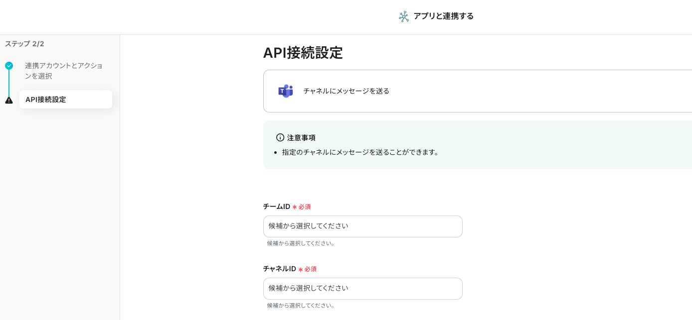 ステップ8:アプリと連携する「チャネルにメッセージを送る」