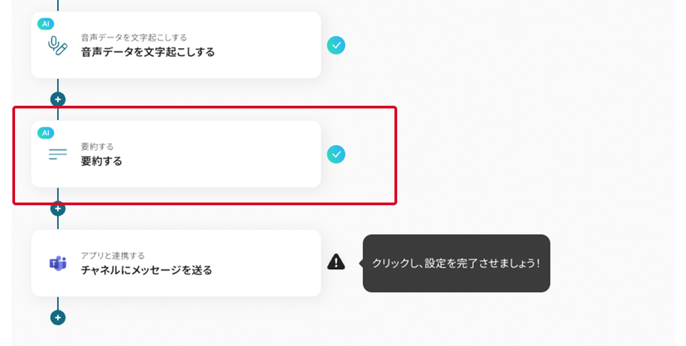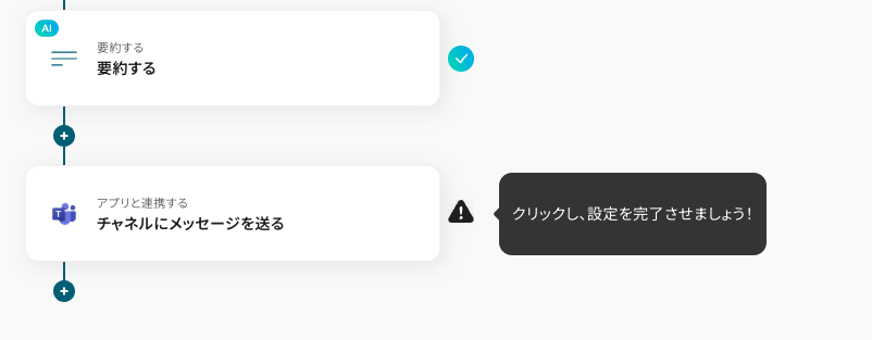 テンプレートの3つ目をクリックします。この工程では、前の工程で抽出した要約結果をMicrosoft Teamsに通知する設定を行います。