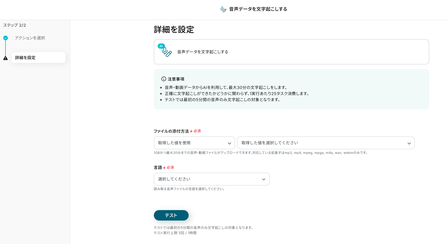 ・OCRまたは音声を文字起こしするAIオペレーションはチームプラン・サクセスプランでのみご利用いただける機能となっております。フリープラン・ミニプランの場合は設定しているフローボットのオペレーションはエラーとなりますので、ご注意ください。