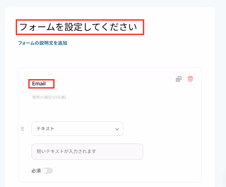 フォームのタイトルや各項目はデフォルト設定のままでもOKですが、任意で設定することも可能です。