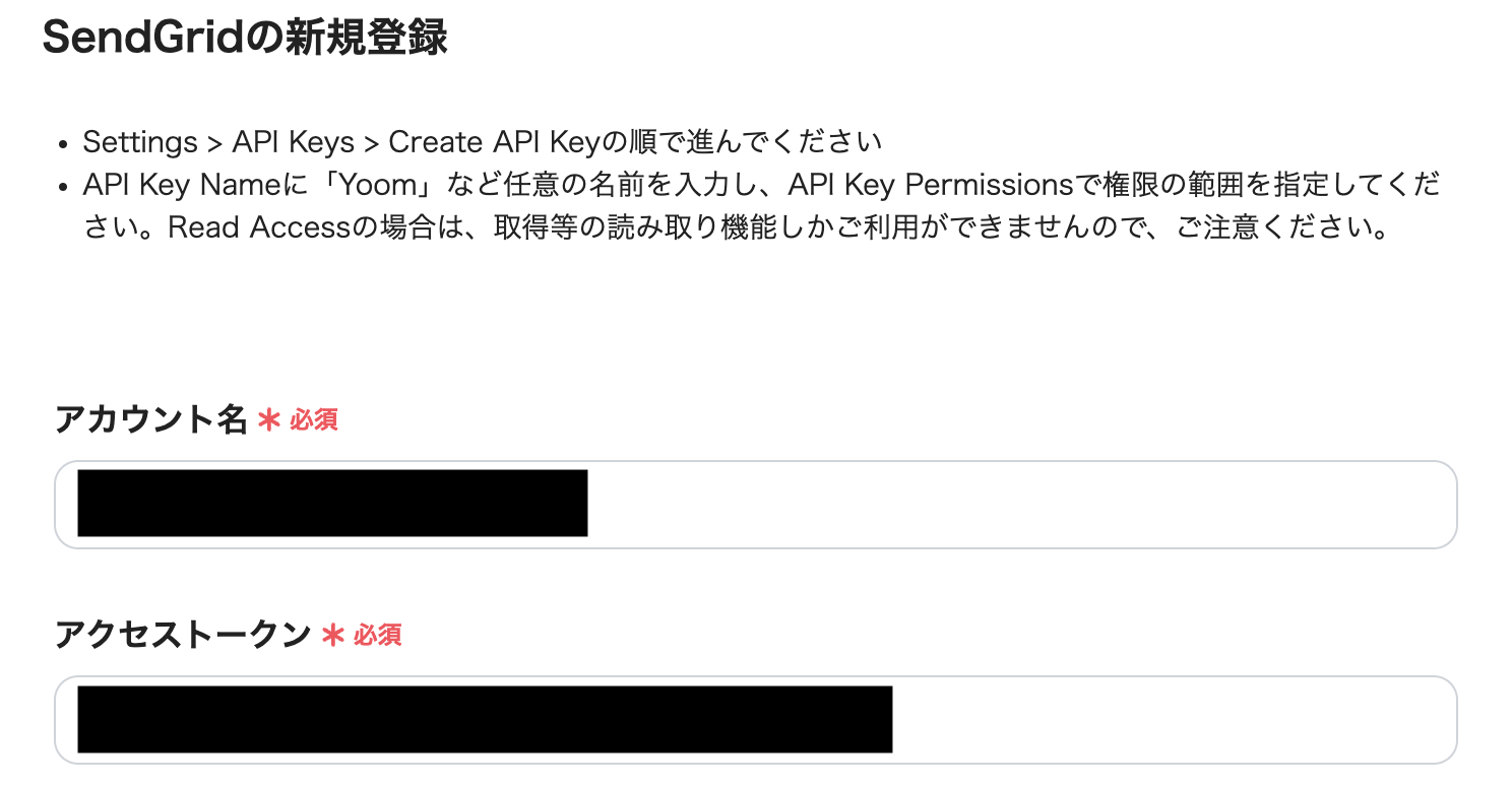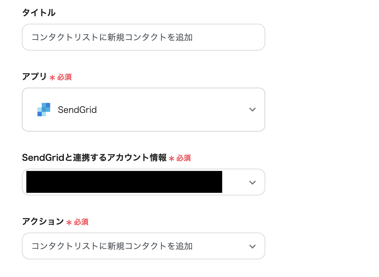 (2)SendGridと連携するアカウント情報を入力し、[次へ]をクリックします。