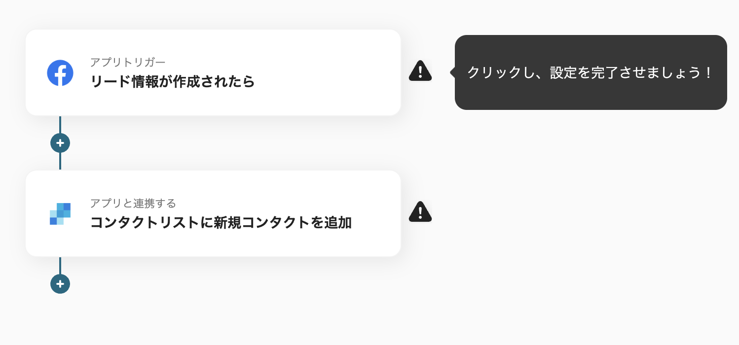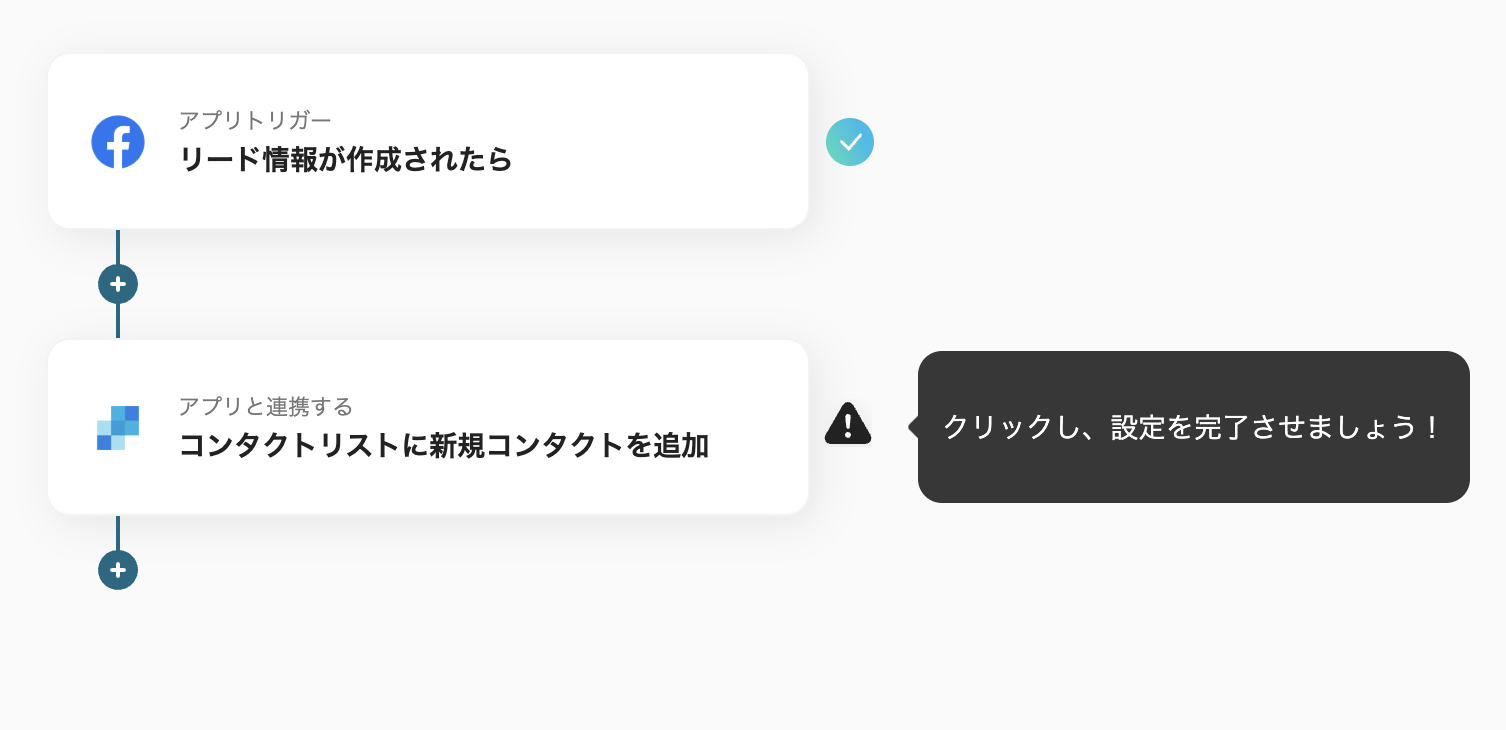 (1)最後に、2つ目のアクション「コンタクトリストに新規コンタクトを追加」をクリックしましょう。