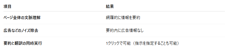 一方で、「Web上の情報を翻訳・要約する」作業においては極めて強力です。