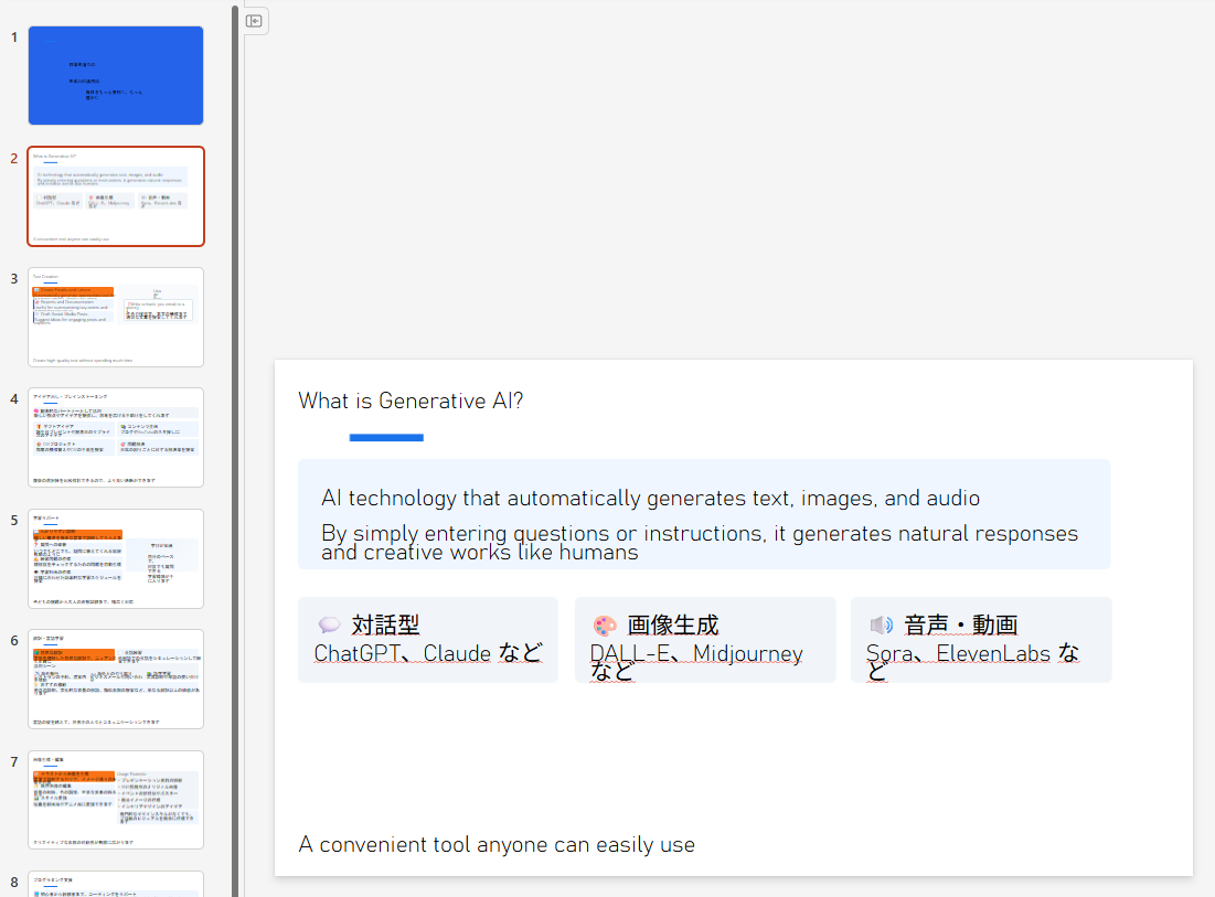 また、翻訳とPowerPointの作成作業を分けて依頼することも試してみました。