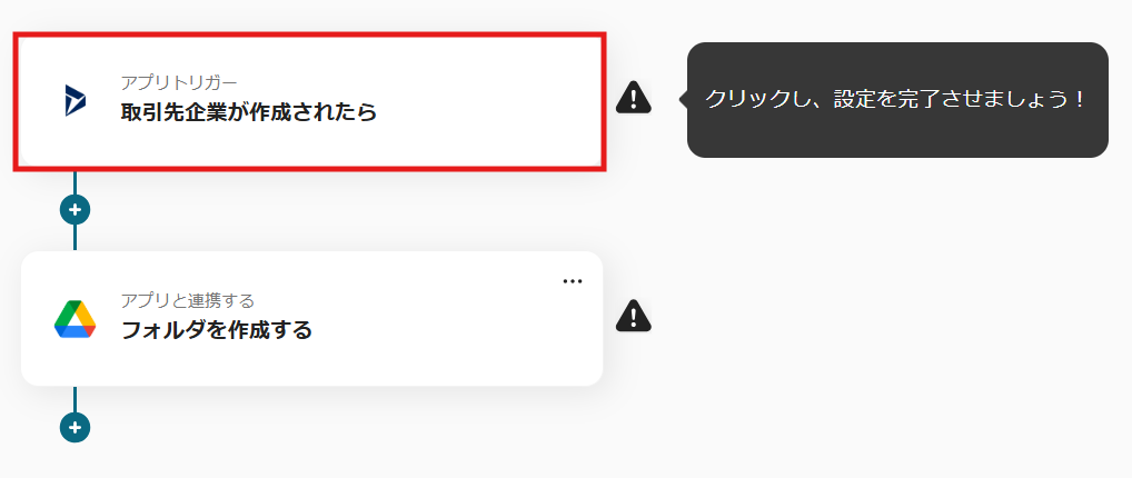「アプリトリガー 取引先企業が作成されたら」をクリックします。