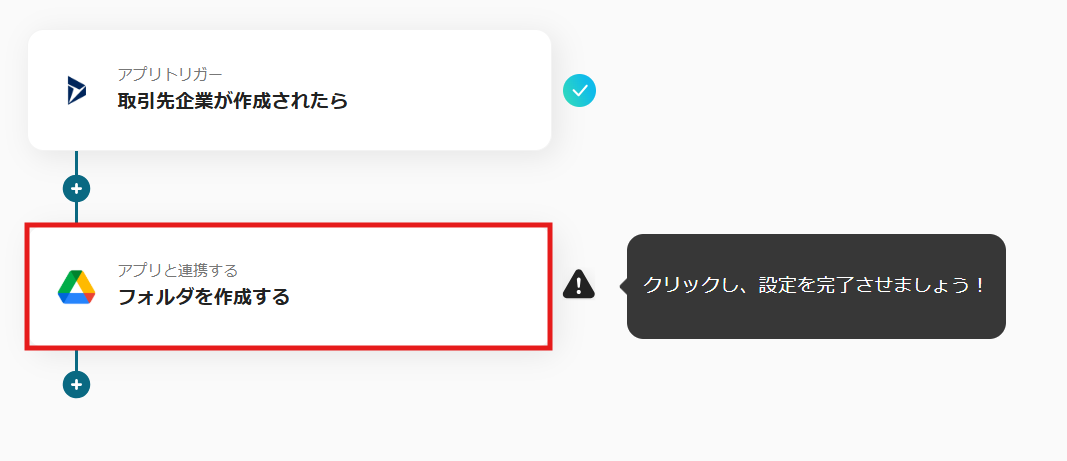 1) フローに戻り、「アプリと連携する フォルダを作成する」のアイコンをクリックします。