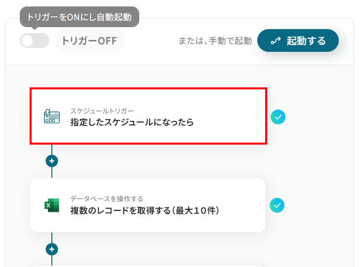 お疲れ様でした!これですべての設定が完了です。 設定が完了すると以下のようなメニューが表示されるので、トリガーをONにします。 これですべての設定が完了したので、動作確認をしてみましょう!